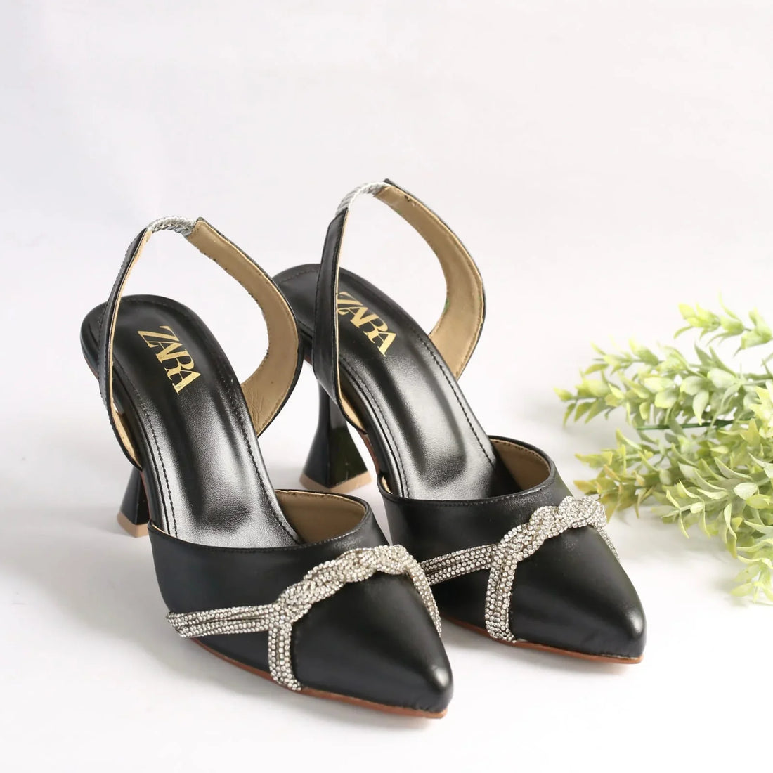 ZARA RHINESTONE SLINGBACK PUMPS - BLACK