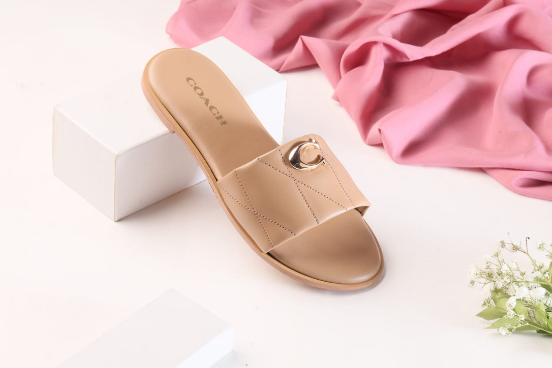 FLAT CRISS-CROSS LEATHER SLIDER SANDALS - BROWN
